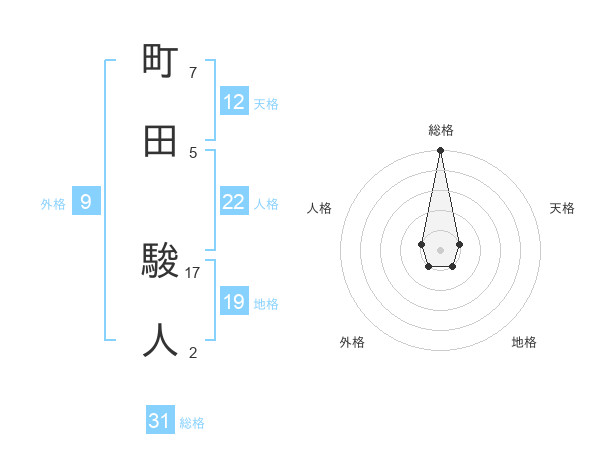 町田 駿人さんの総格は31画の5点!