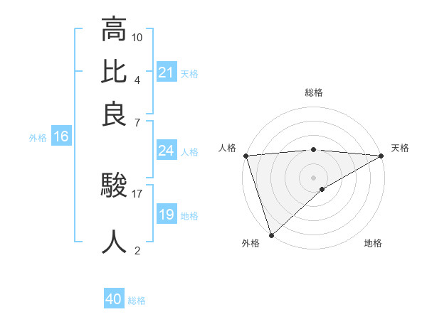 高比良 駿人さんを姓名の画数から五運を鑑定
