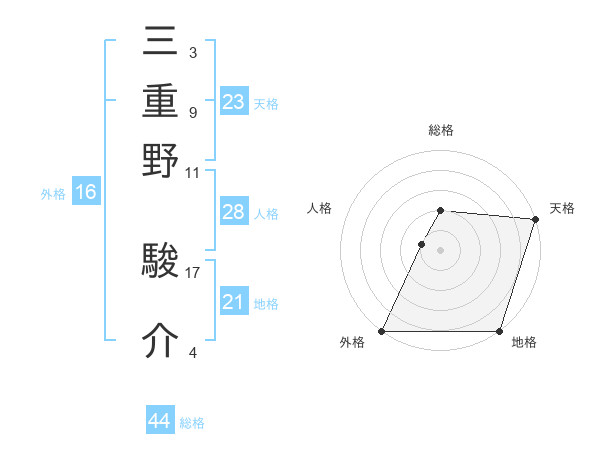 三重野 駿介さんを姓名の画数から五運を鑑定