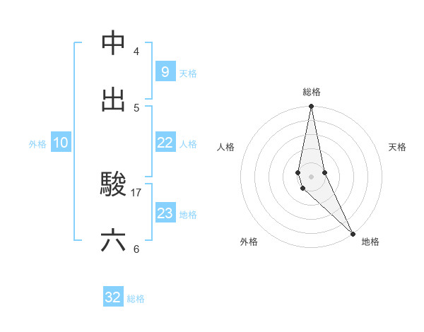 中出 駿六さんの総格は32画の5点!