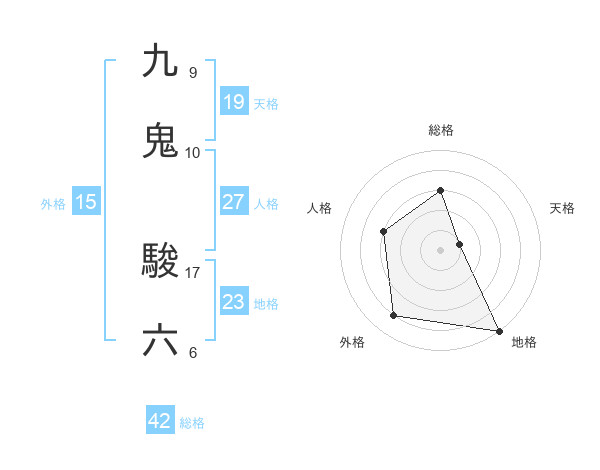 九鬼 駿六さんを姓名の画数から五運を鑑定