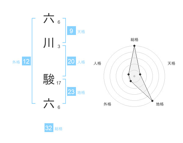六川 駿六さんの総格は32画の5点!