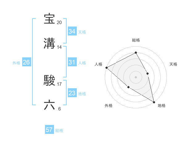 宝溝 駿六さんの天格は34画の2点!