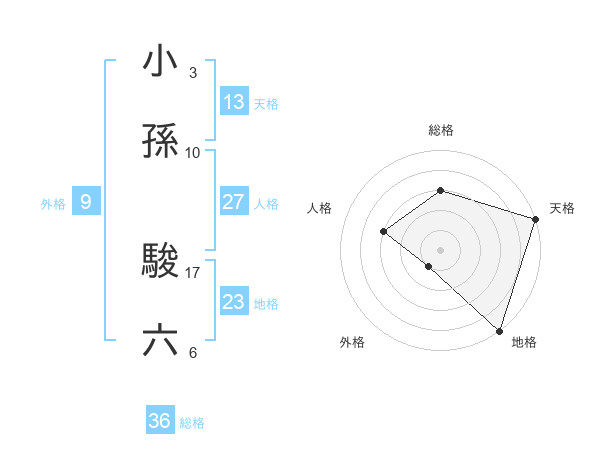 小孫 駿六さんの天格は13画の5点!