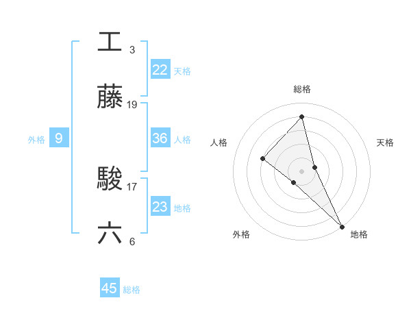 工藤 駿六さんの総格は45画の4点!