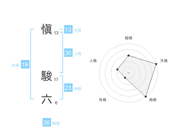 愼 駿六さんの天格は13画の5点!