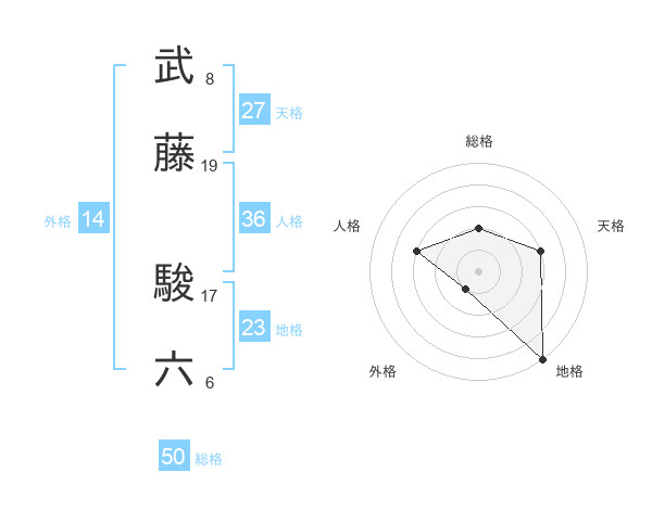 武藤 駿六さんの総格は50画の2点!