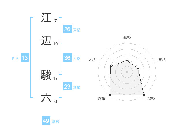 江辺 駿六さんを姓名の画数から五運を鑑定