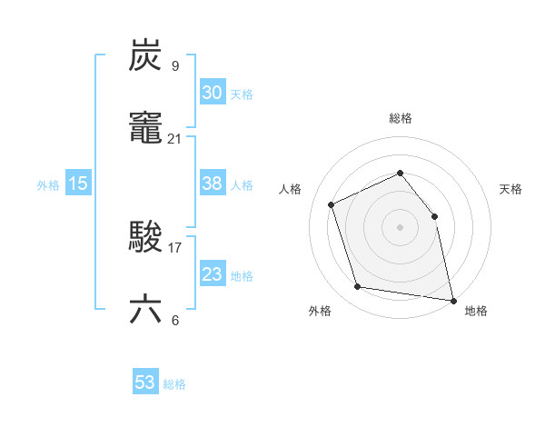 炭竈 駿六さんの総格は53画の3点!