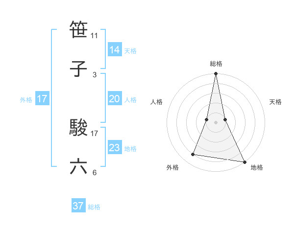 笹子 駿六さんを姓名の画数から五運を鑑定