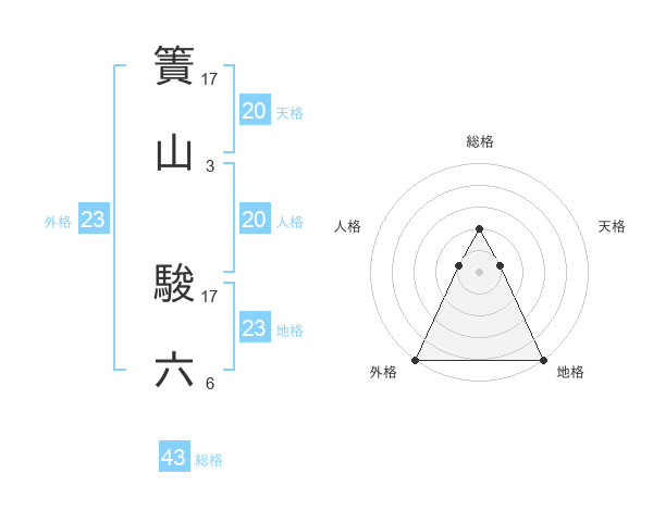 簀山 駿六さんを姓名の画数から五運を鑑定