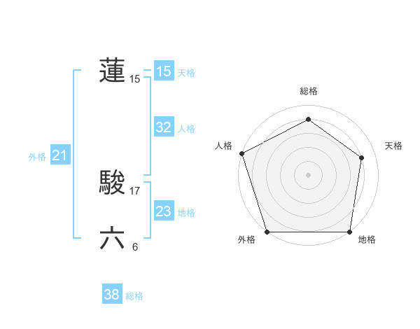 蓮 駿六さんの外格は21画の5点!