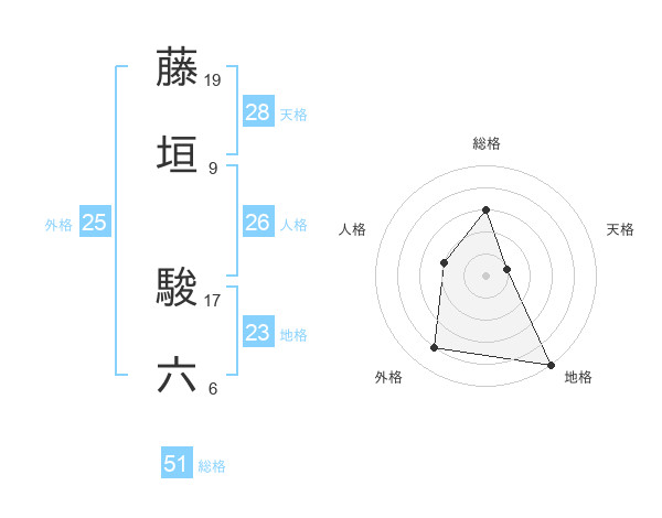 藤垣 駿六さんの外格は25画の4点!