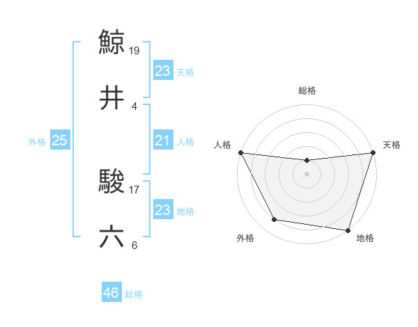 鯨井 駿六さんを姓名の画数から五運を鑑定