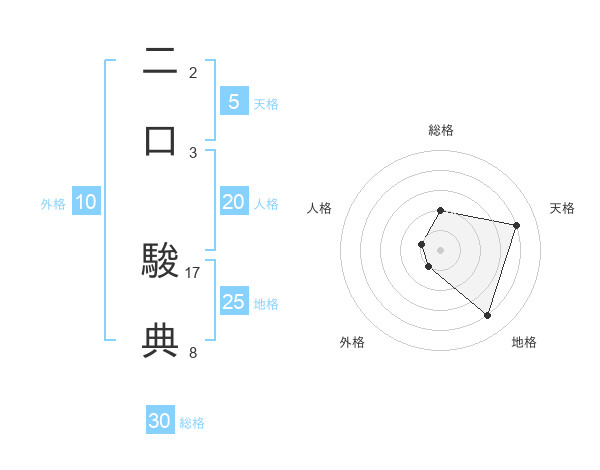 二口 駿典さんの天格は5画の4点!