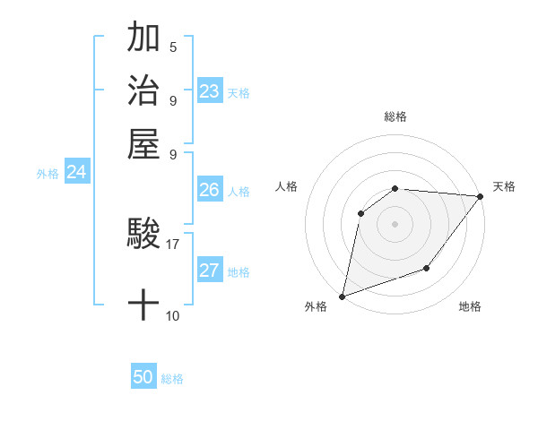 加治屋 駿十さんの天格は23画の5点