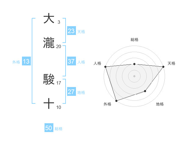 大瀧 駿十さんを姓名の画数から五運を鑑定