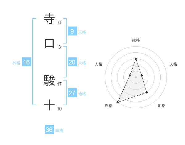 寺口 駿十さんを姓名の画数から五運を鑑定