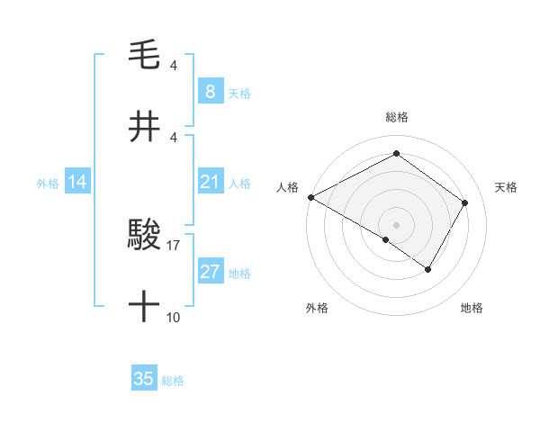 毛井 駿十さんの人格は21画の5点!
