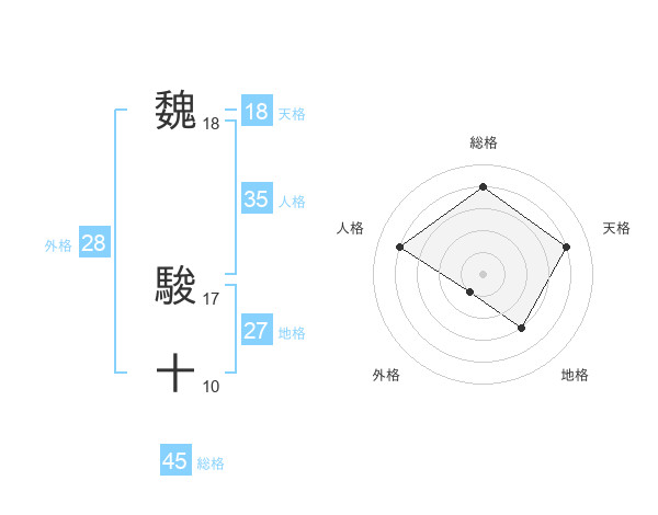 魏 駿十さんの総格は45画の4点!