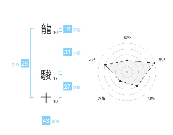 龍 駿十さんの総格は43画の2点!