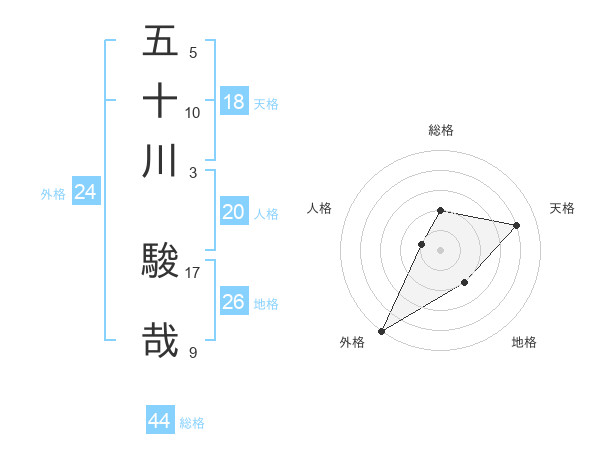 五十川 駿哉さんを姓名の画数から五運を鑑定