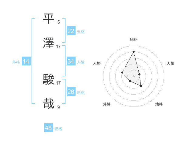 平澤 駿哉さんを姓名の画数から五運を鑑定