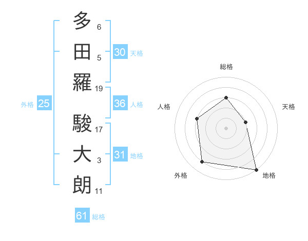 多田羅 駿大朗さんを姓名の画数から五運を鑑定