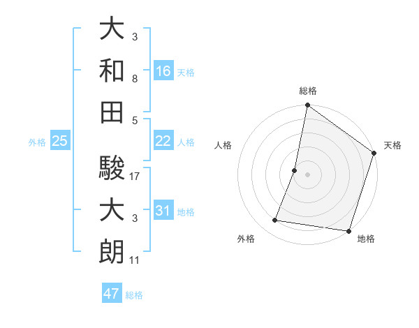 大和田 駿大朗さんを姓名の画数から五運を鑑定