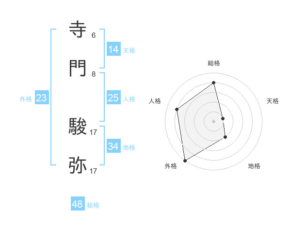 寺門 駿弥さんの天格は14画の1点!