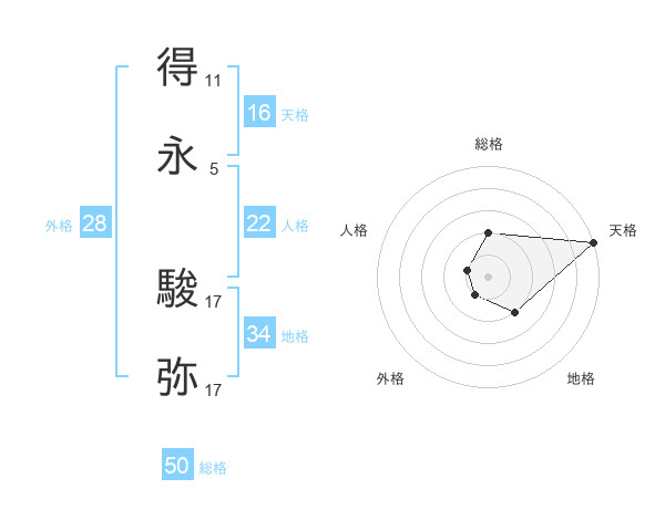 得永 駿弥さんの天格は16画の5点!