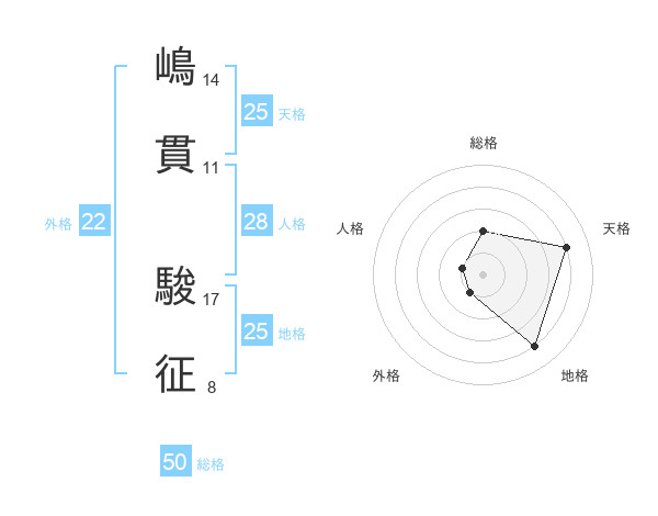嶋貫 駿征さんを姓名の画数から五運を鑑定