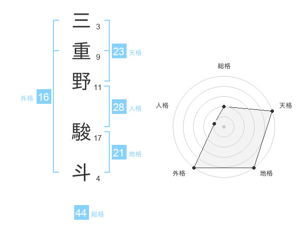 三重野 駿斗さんの総格は44画の2点!