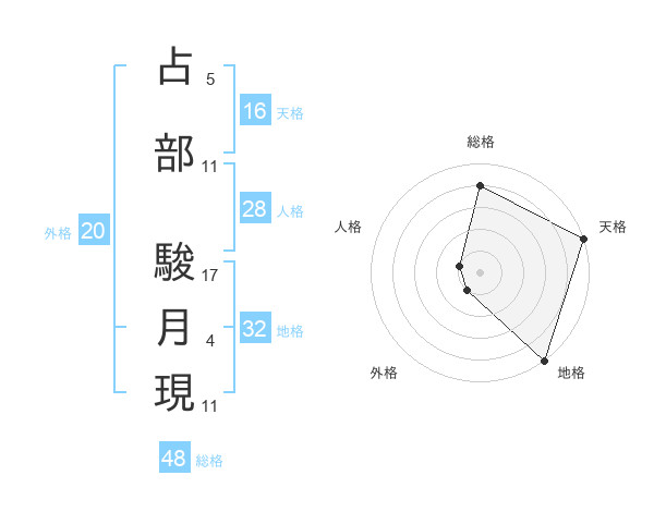 占部 駿月現さんの地格は32画の5点!