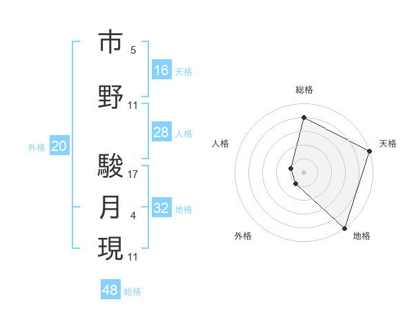 市野 駿月現さんを姓名の画数から五運を鑑定