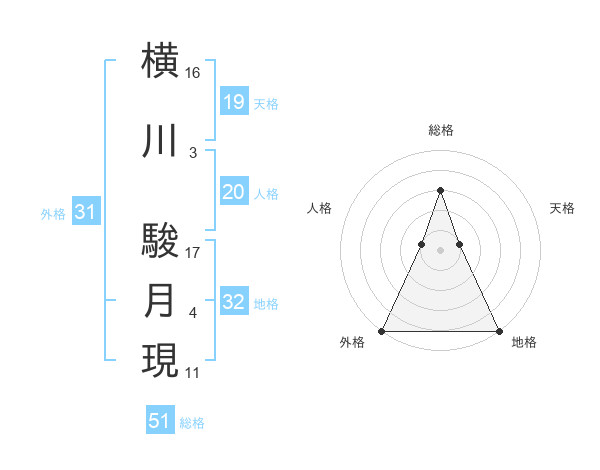 横川 駿月現さんの総格は51画の3点!