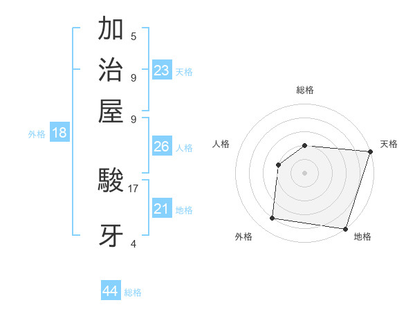 加治屋 駿牙さんの総格は44画の2点!