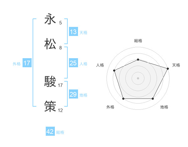永松 駿策さんの天格は13画の5点!