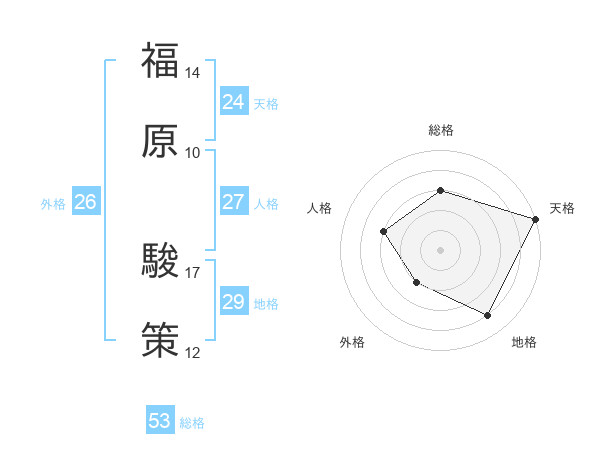 福原 駿策さんの総格は53画の3点!