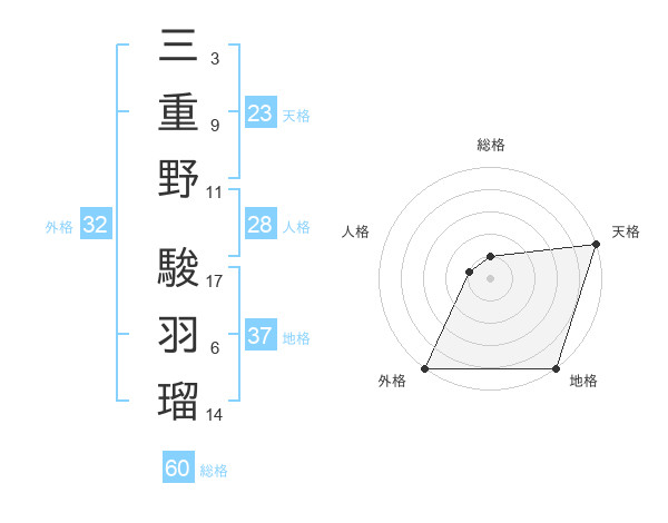 三重野 駿羽瑠さんを姓名の画数から五運を鑑定