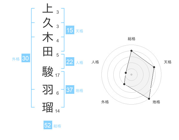 上久木田 駿羽瑠さんの総格は52画の4点!