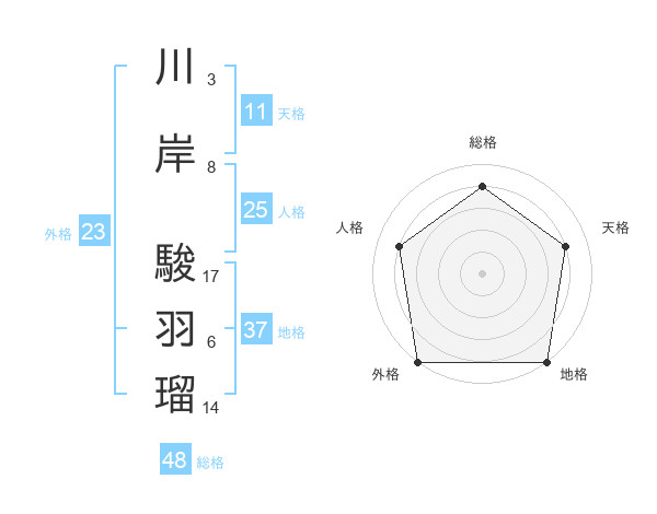 川岸 駿羽瑠さんの総格は48画の4点!