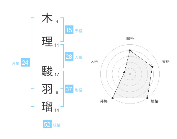 木理 駿羽瑠さんの総格は52画の4点!