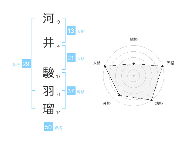 河井 駿羽瑠さんを姓名の画数から五運を鑑定