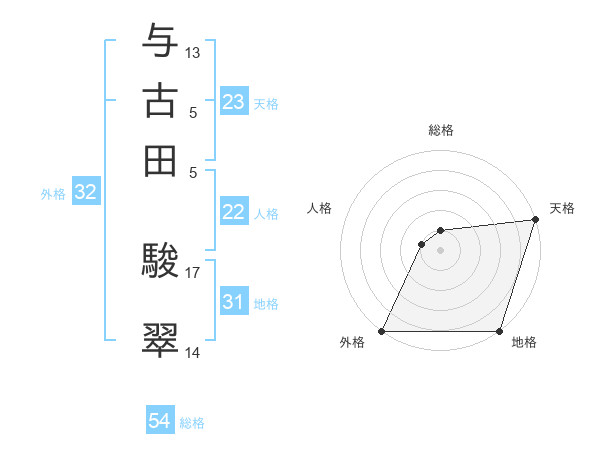 与古田 駿翠さんを姓名の画数から五運を鑑定