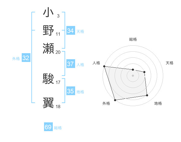 小野瀬 駿翼さんの地格は35画の4点!