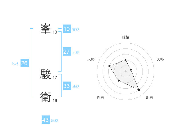 峯 駿衛さんを姓名の画数から五運を鑑定