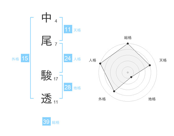 中尾 駿透さんを姓名の画数から五運を鑑定