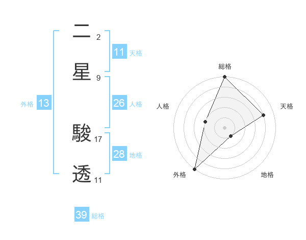 家系が持つ宿命的な運勢を表します。祖先から受け継いだ苗字ですので自分の力が及びません。家柄を象徴します。