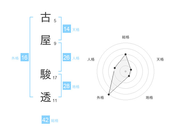 古屋 駿透さんを姓名の画数から五運を鑑定